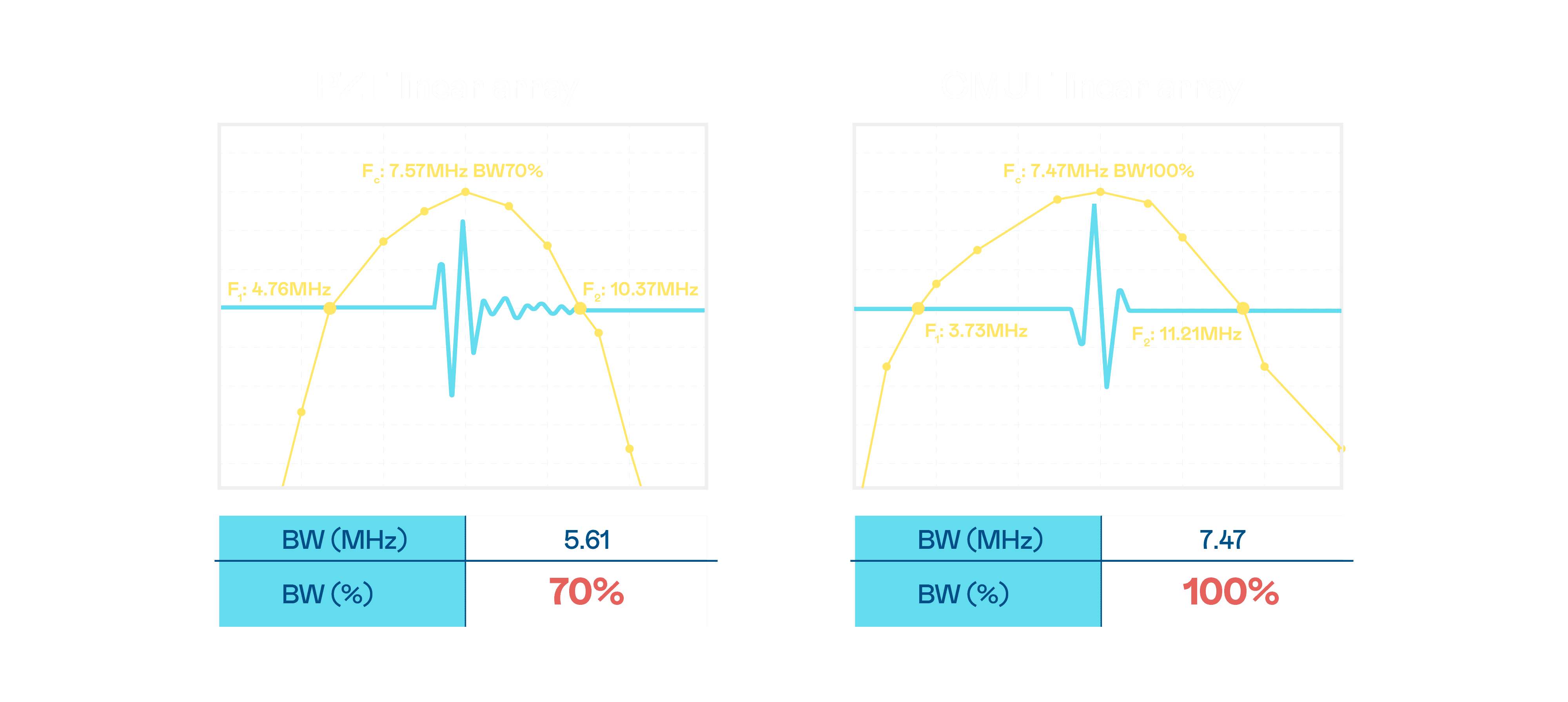 超音波影像的解析度高低,,首先取决于探头能发出的讯号频宽。。至成国际 CMUT 可提供高清晰的超音波讯号,,,,提供高频宽、、高灵敏度、、、影像纹理细节更高的超音波影像,,协助医护人员缩短影像判读时间及利用精准的医疗影像进行诊断。。
