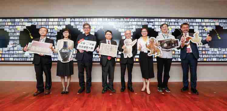 至成国际携手创利空间为故宫建置的智慧文物互动导览墙及轮播墙,,今日正式启用。。(左四:至成国际新事业暨投资管理总部副总经理杨本豫、、右四:故宫博物院院长吴密察、、右三:太极影音董事长黄宝云)