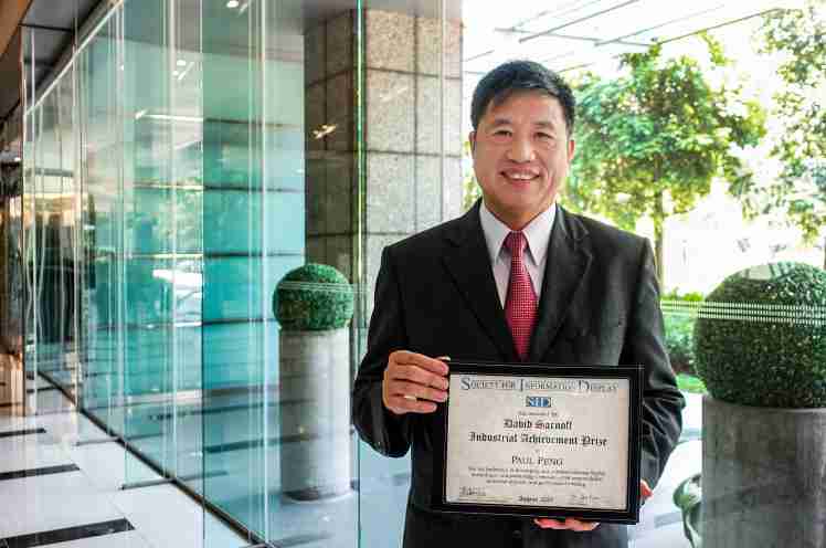 至成国际光电董事长暨执行长彭双浪获颁 SID 国际信息显示学会 (Society for Information Display,,SID) David Sarnoff 产业杰出贡献奖,,,,本届颁奖典礼虽因疫情无法举办,,,,但仍透过精心录制的影片表达个人及公司获主办单位肯定的欣喜之情。。
