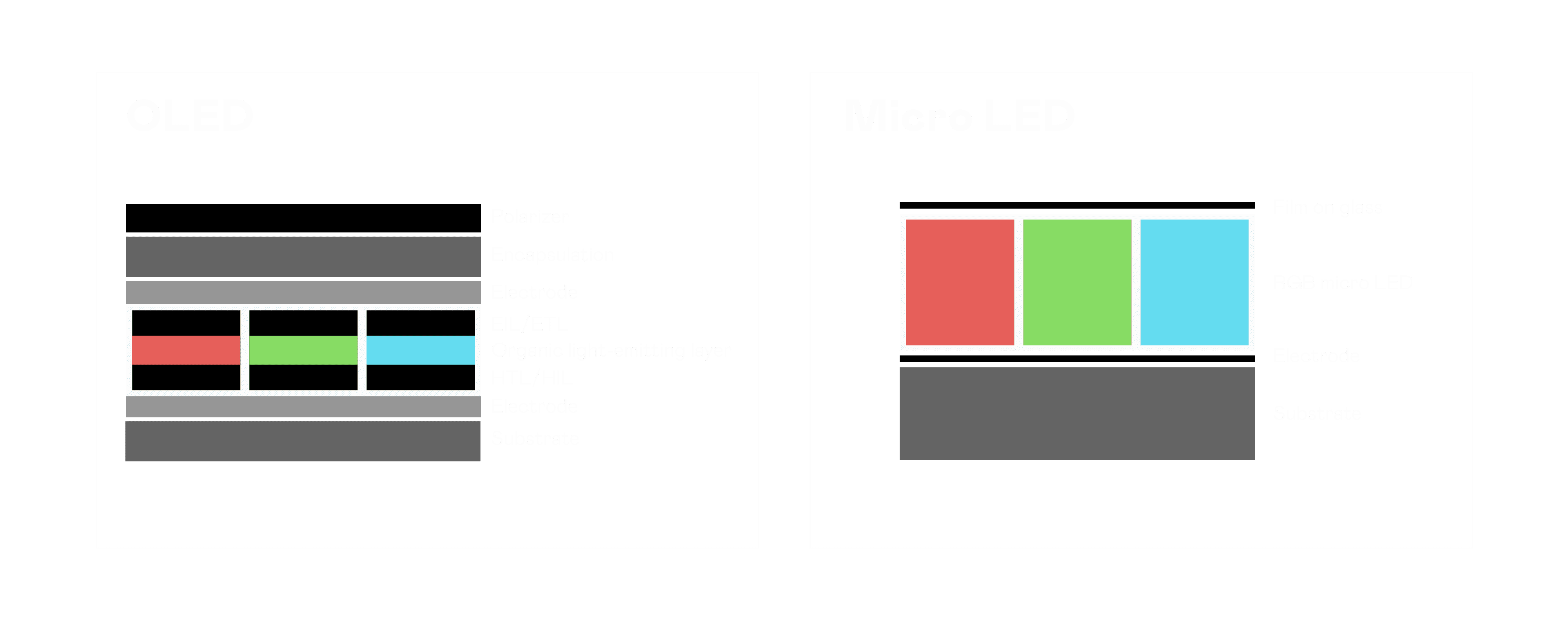 以 LED 做为显示画素,,,,可让 LED 的发光效率发挥到极致,,从而让显示器具备优异的亮度表现,,不论是在户外或室内,,,,均具备出众的显示效果。。。。同时,,,,与使用有机材料的 OLED 相比,,LED 具备更稳定、、寿命更长的特性,,,不仅不会有画面烙印问题,,而且更不容易出现故障、、坏点。。