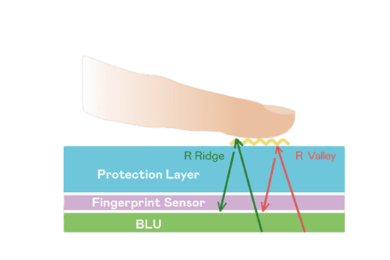 TFT 指纹扫描感测技术利用薄膜电晶体 (TFT) 当作光感测元件,,藉由非晶硅 (a-Si) 与低温多晶硅(LTPS)既有光电转换特性对不同波段光源进行吸收,,,使感测 IC 读取阵列感测元件的光漏电差异,,,转换成数位灰阶影像。。。。